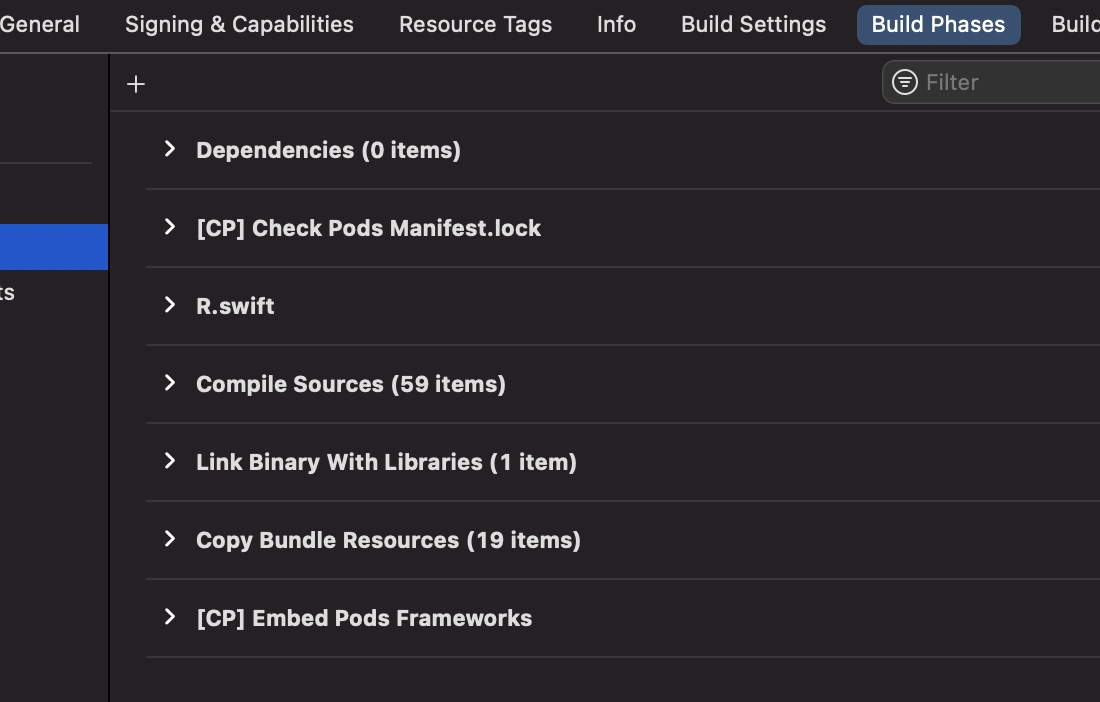 target -> build phase 메뉴로 이동