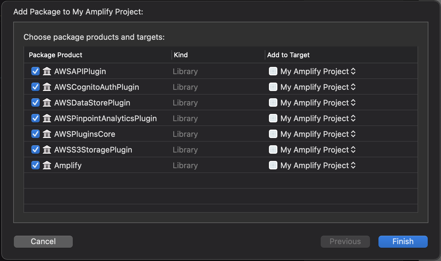 pod 'Amplify' pod 'Amplify/Tools' pod 'AmplifyPlugins/AWSAPIPlugin' pod 'AmplifyPlugins/AWSDataStorePlugin' pod 'AmplifyPlugins/AWSCognitoAuthPlugin' pod 'AWSPredictionsPlugin'pod install 후에 xcode로 프로젝트 열기