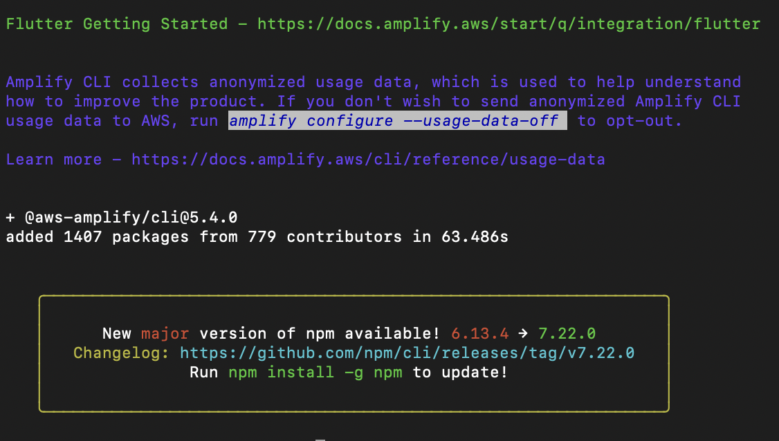 npm install -g @aws-amplify/cli정상 설치된 화면