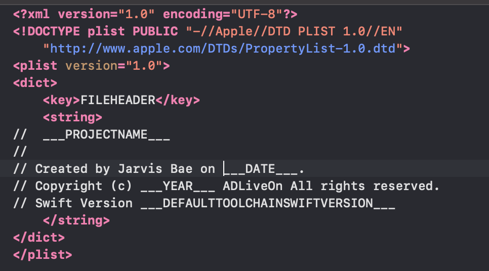 파일명은 IDETemplateMacros.plist