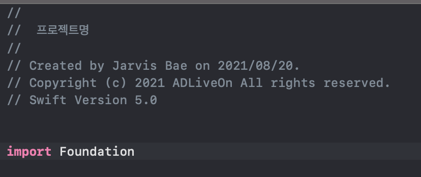 xcode 파일 생성시에 자동으로 달리는 주석을 수정하는 방법에 대해 알아보겠습니다.
